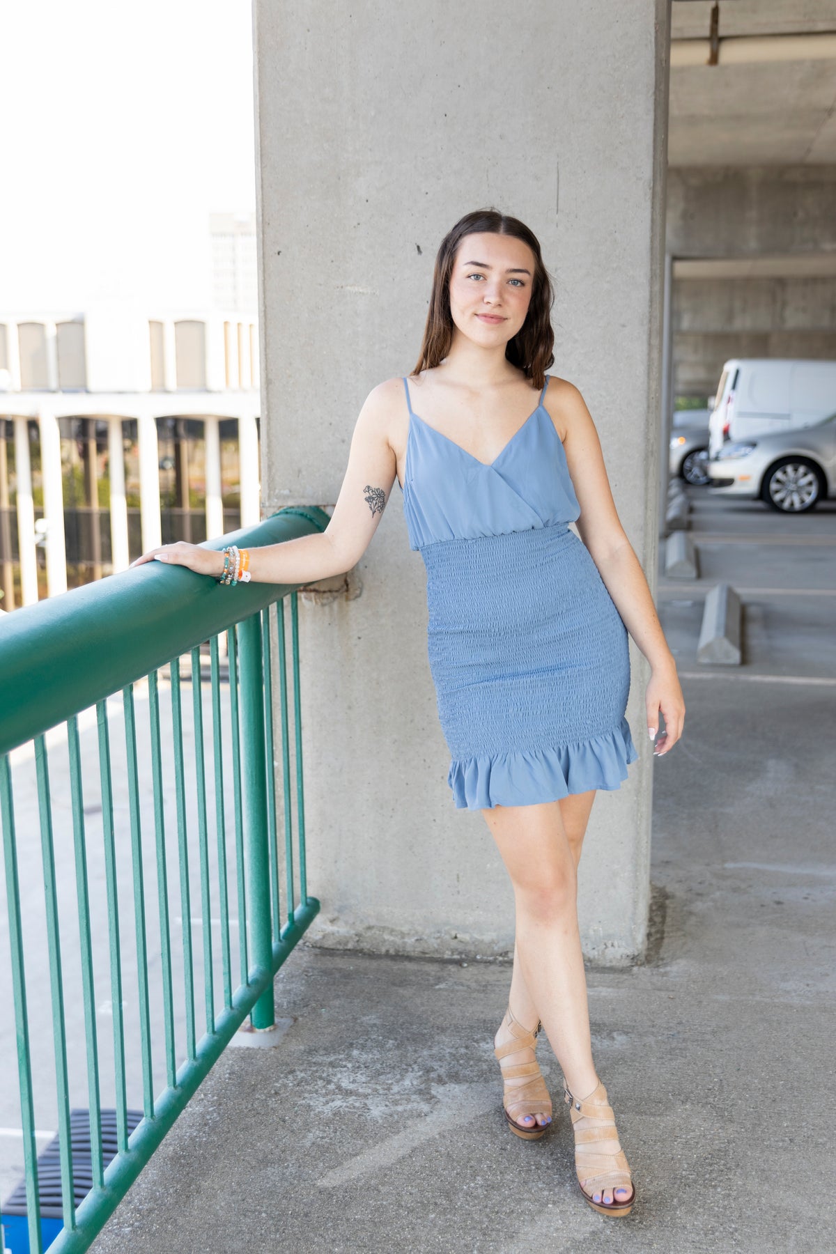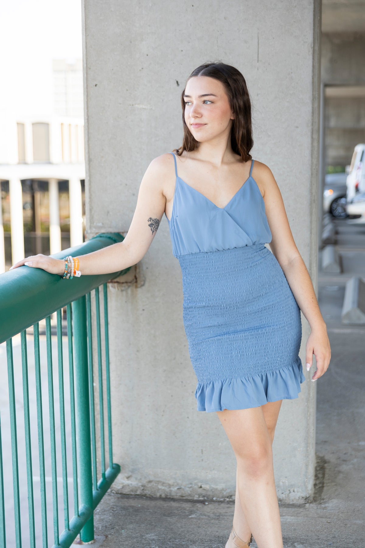 On My Own Smocked Mini Dress: Coastal Blue