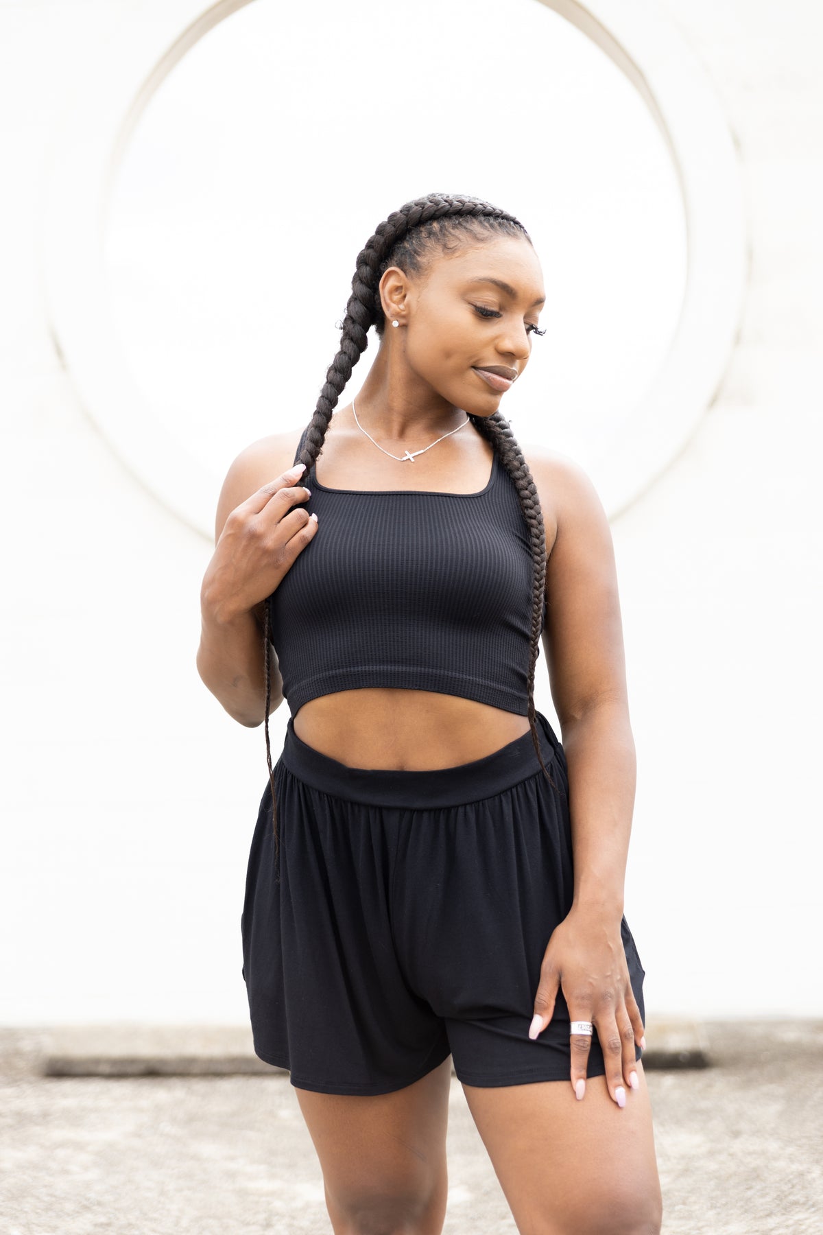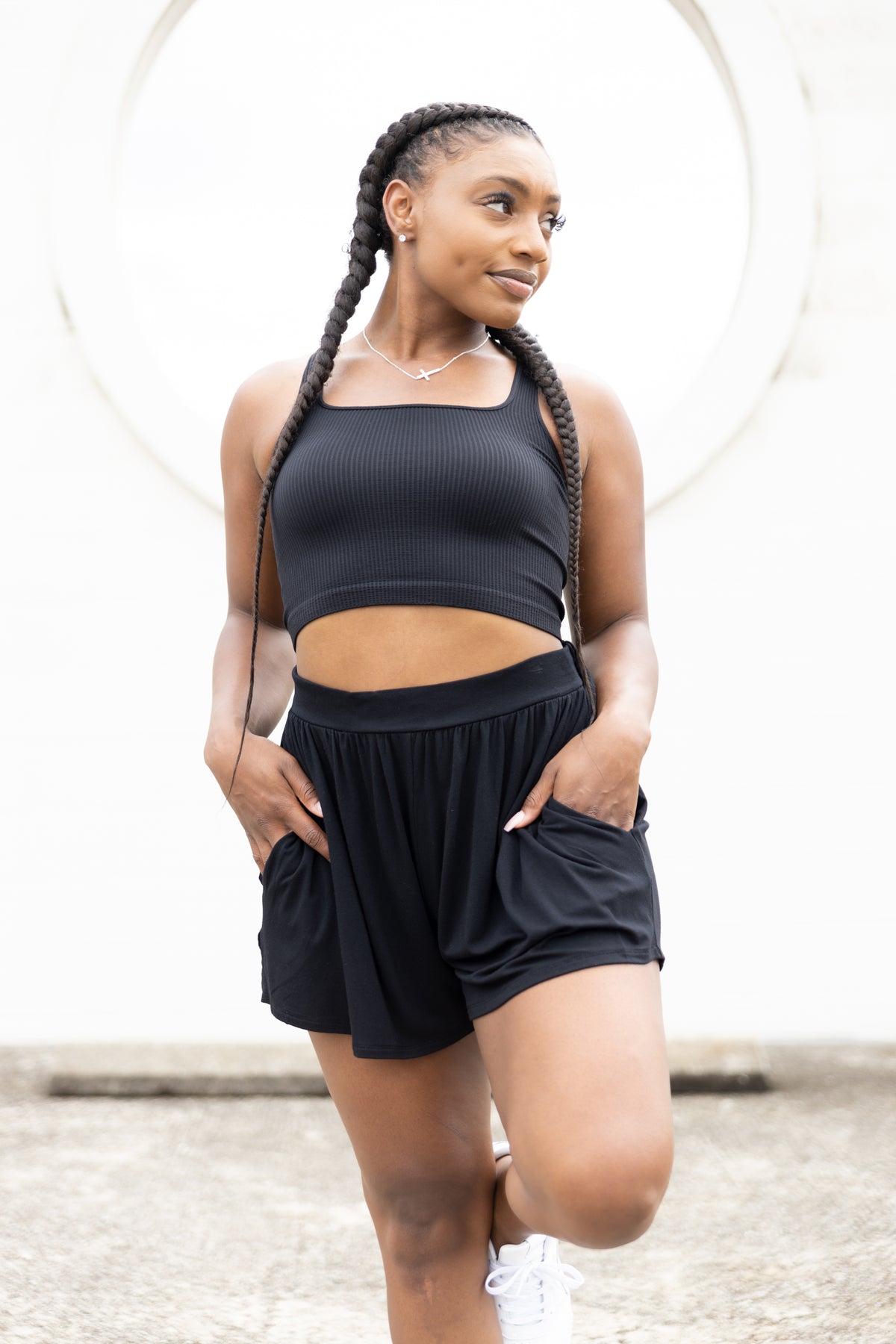 From being on-the-go, to lounging around to stepping out, these shorts will have you set to seize the day! Comfy, versatile, high-rise with elastic waistband, fully lined with side pockets. Size pictured, small.
