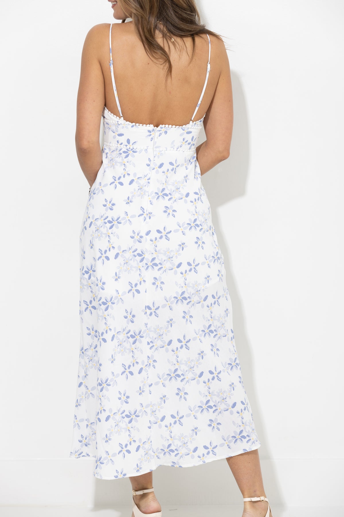 Sweet and simple, this lined floral midi dress is perfection for summer! Front slit, adjustable straps. Product runs small, size pictured, small.