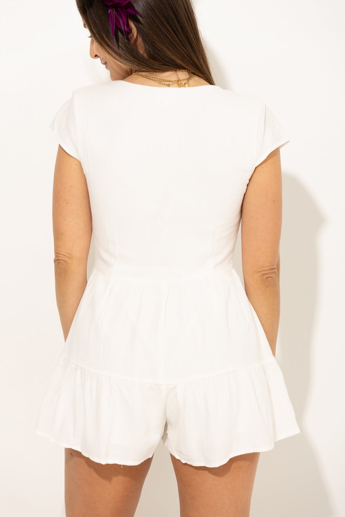 The cutest brunch to beach romper is here! Button front, ruffled hem, fully lined. Size pictured, small. Romper runs small. Size pictured, small.