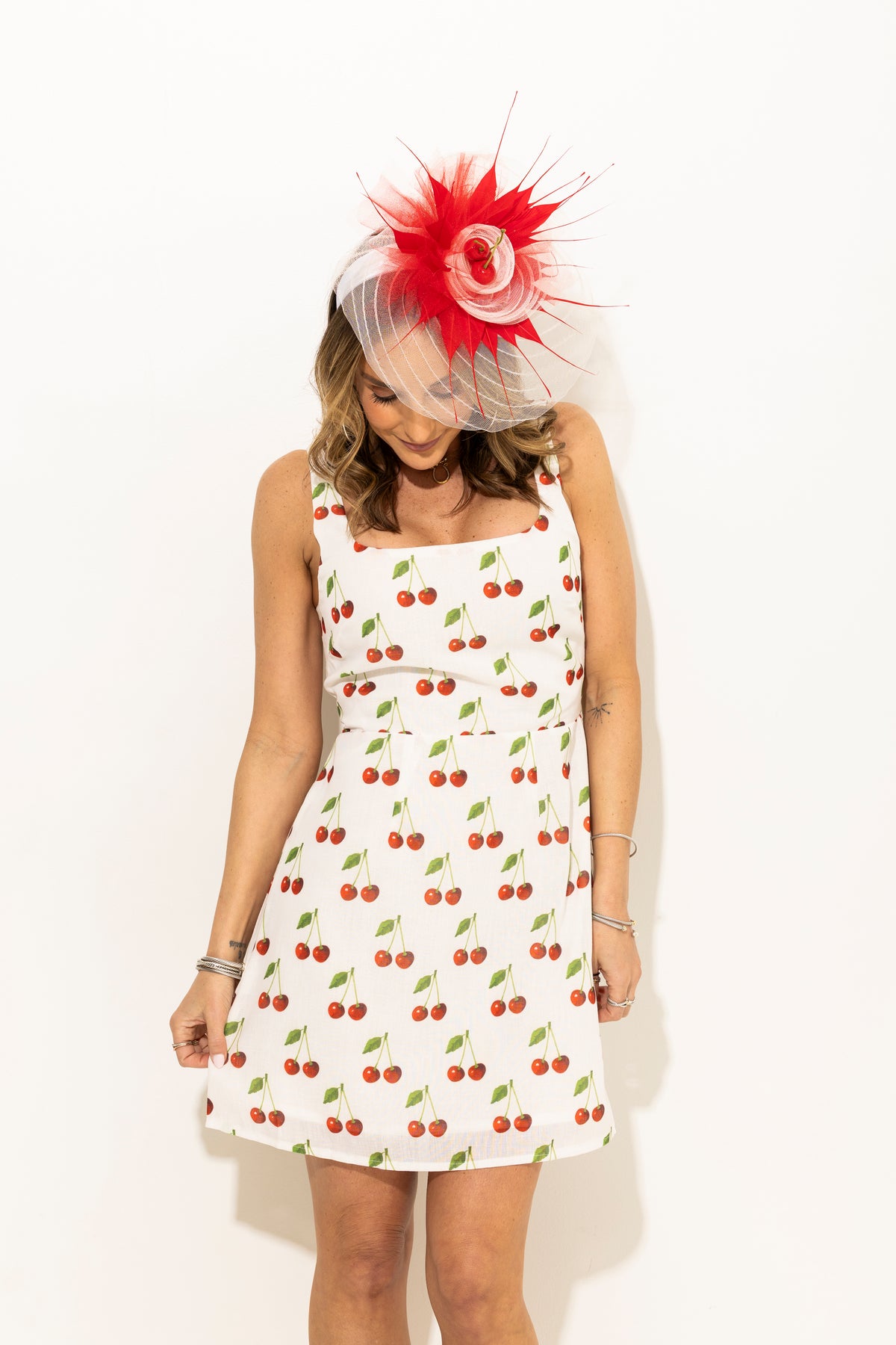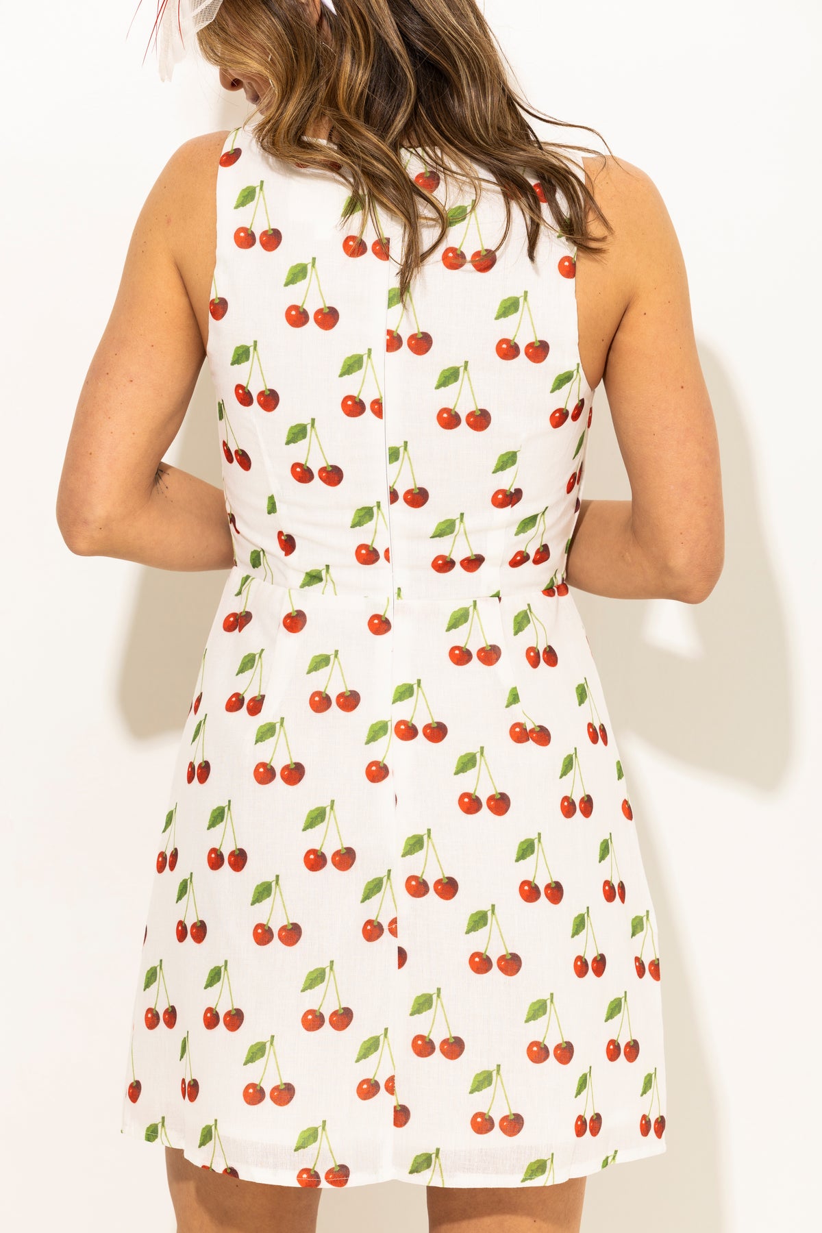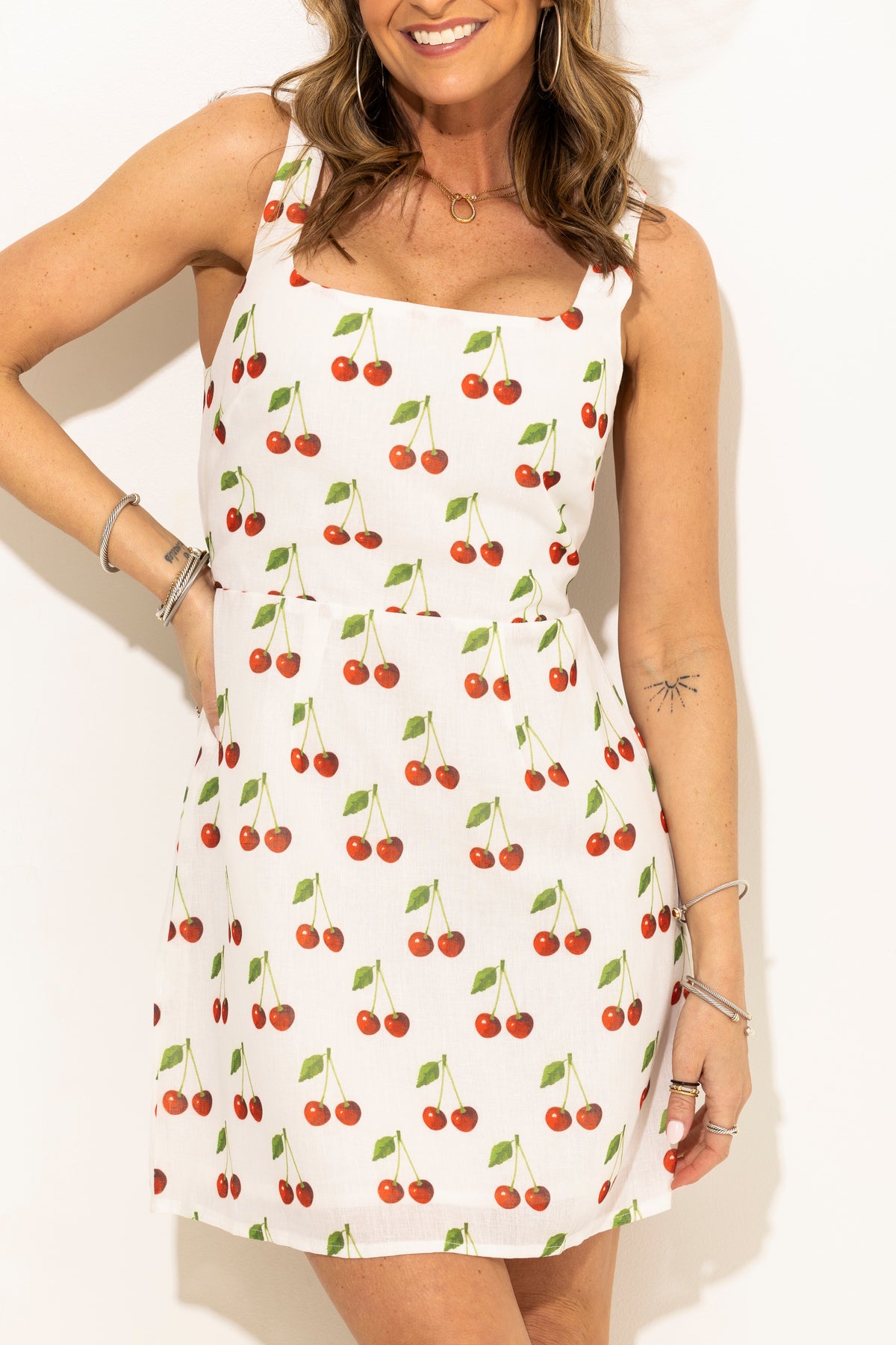 For the cherry on top of your fashion game, slip into this playful mini dress. The classic A-line silhouette, square neckline, and trendy cherry print make this dress a must-have. Fully lined for comfort and confidence. (P.S. This dress is the "cherry on top" of any outfit!) Model is 5'1, size 0.