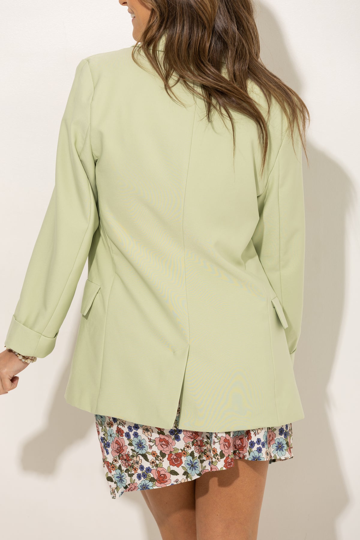 Grab your girls and hit the town in our newest blazers! Collared, pockets, buttons for looks, rolled sleeves. Pair over a skirt and one of our famous seamless mock necks or a dress! Size up for an oversized look. Size pictured, medium.